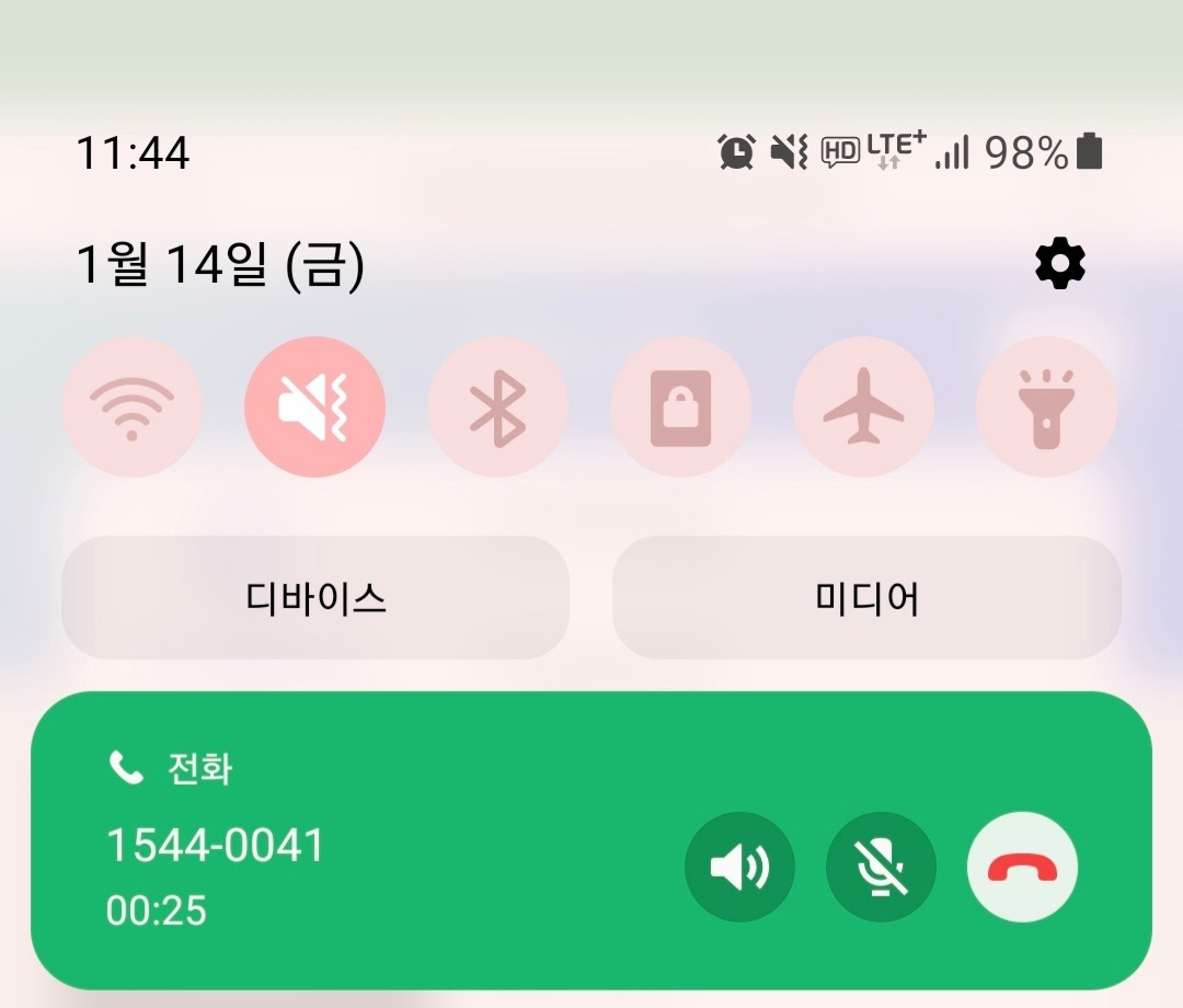 음성 ARS로 전환됩니다. 휴대폰 화면 최상단을 아래로 내리고, 통화중 상태를 선택해 주세요.